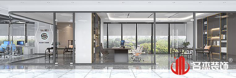 在整個的辦公室裝修設計當中,運用流行的霧霾藍作為整個空間的色調基準,同時還加入各種不規則的圖形,這個在門頭處也能體現出,這些圖形的加入也能讓整個空間變得更加有設計感。點綴空間的同時,還能讓空間更加有層次感。大量的燈光引入,也使得產品展示變得更加有吸引力。